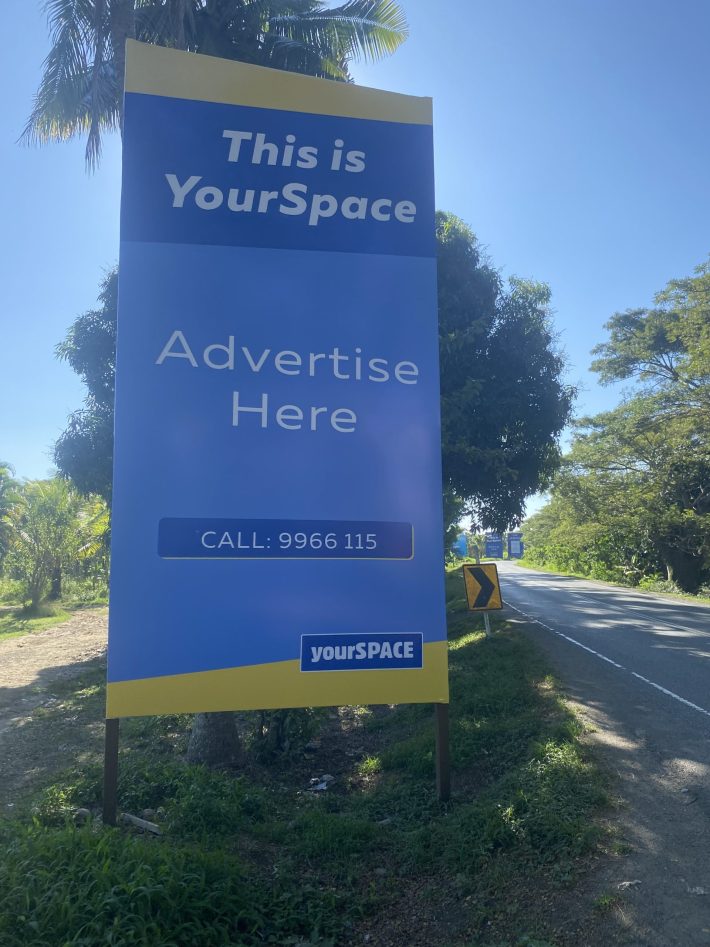 Narewa Road Enroute to Denerau-2 Billboard Description “Showcase your brand in style with this single-sided billboard on Narewa Road, enroute to Denarau. Built with a robust steel and sheet-metal structure, it offers a sleek, high-visibility platform to captivate travelers heading to Fiji’s world-class destination.” Size 6m x 3m Price $960 VEP/Monthly/Single Side Term Monthly/Yearly